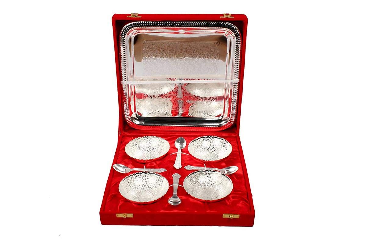 Buy Punix Handcrafted Silver Quadra Bowl 9 Pieces Set Of 4 Bowl 4 Spoon And 1 Tray With Gift Box Best Choice For Gifting Online At Low Prices In India Amazon In