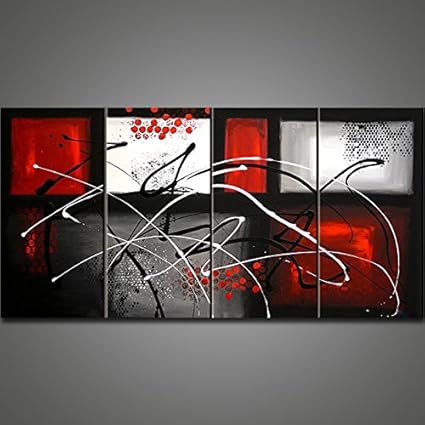 Dipinto A Mano Originale Kunst Malerei Nero E Bianco Righe Rosso Grigio Spessore Coltello Pittura A Olio Dipinto Astratto In Tela Wall Art Home Decoration 4 Splicing Pittura Tela Black Grey Red White 15x30inchesx4 60x30inches Amazon It Casa