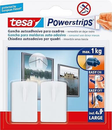 Tesa Powerstrips 4 Strisce Adesive Appendi Quadri 2 Ganci Adesivi 1 Kg Bianco Amazon It Fai Da Te