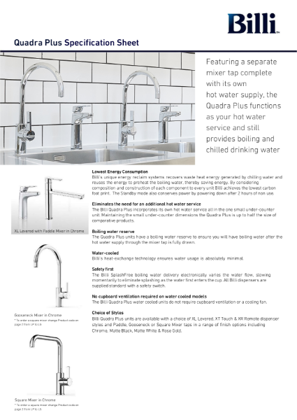 Billi Quadra Plus Filtered Water System Data Sheet Nbs Source