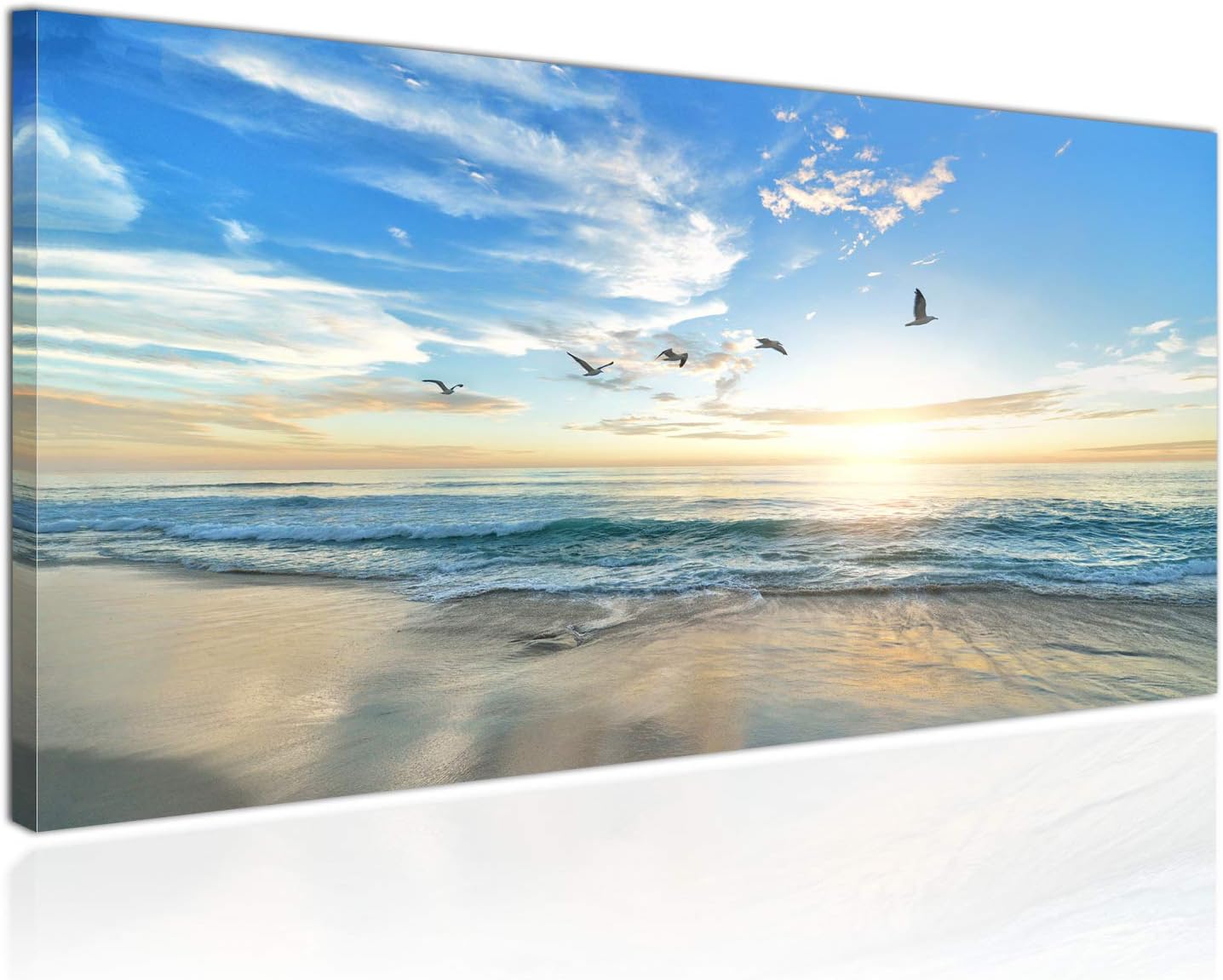 Topquadro Quadro Xxl Stampa Su Tela 100x50cm Mare Al Tramonto Gabbiani Onde E Spiaggia Decorazioni Interni Immagine Panoramica Amazon It Casa E Cucina
