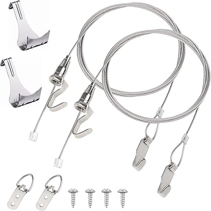 Ganci Appendi Quadri Cancelleria E Prodotti Per Ufficio Confezione Da 2 Kit Per Appendere Quadri Con Gancio Regolabile 2 Mm 2 M Gancio Per Modanatura Contiene Fino A 40 Kg Hyber Cara In Acciaio Inox