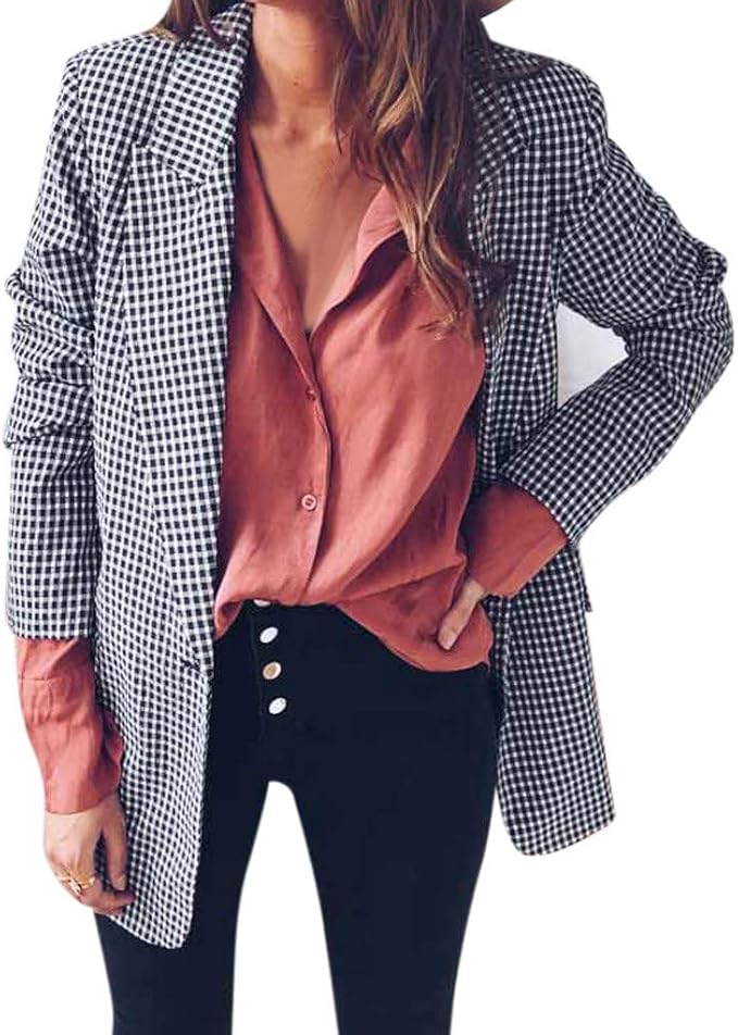 Longra Blazer A Quadri A Manica Lunga Donna Slim Fit Blazer Giacca Elegante Corto Cappotto Ufficio Business Blazer Maniche Lunghe Aperto Davanti Vintage Cappotto Con Bottone Maglietta Top Amazon It Abbigliamento