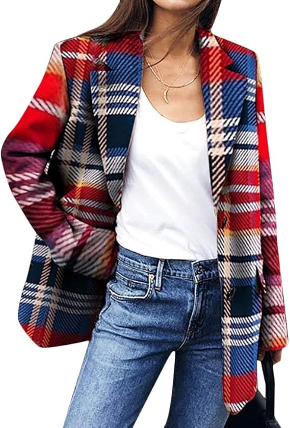 Luoluoluo H Blazer A Quadri Donna Blu Cardigan Corto Elegante Slim Fit Monopetto Giacche Stile Britannico Ragazza Maniche Lunghe Da Abito Risvolto Formale Casual Classic Giacca S 2xl Amazon It Abbigliamento