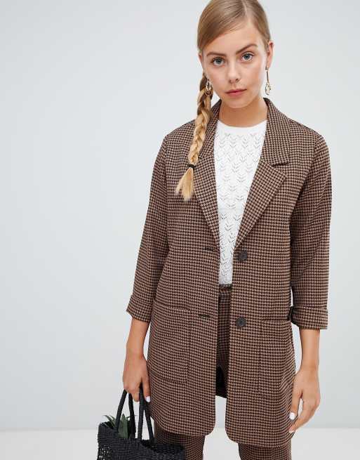 Monki Blazer Lungo Marrone Con Stampa A Quadri Asos