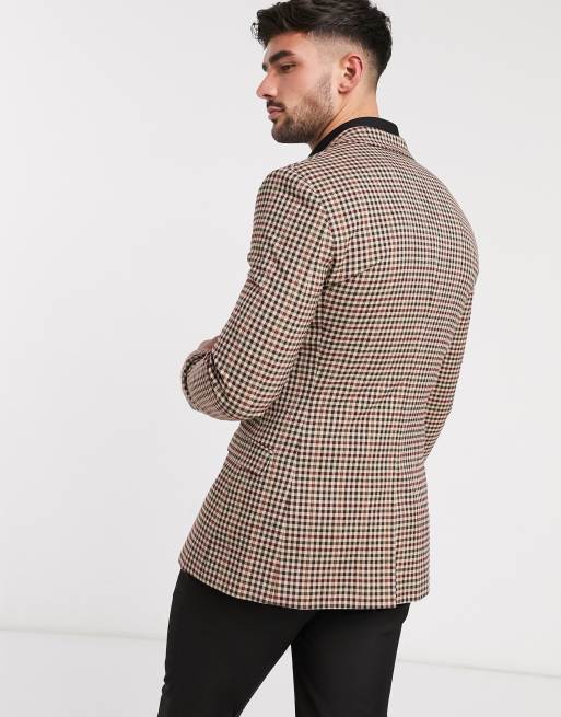 Topman Blazer Super Skinny A Quadri Marroni Asos