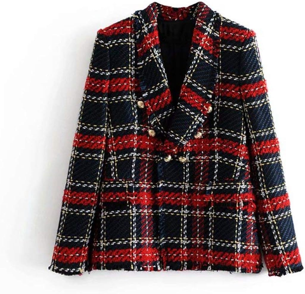 Cappotto Tasche A Quadri Doppio Petto Collo Con Risvolto Blazer Preppy Casual In Lana Rosso Nero Cappotto Tops