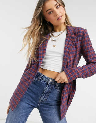 Stradivarius Blazer Rosso A Quadri Asos