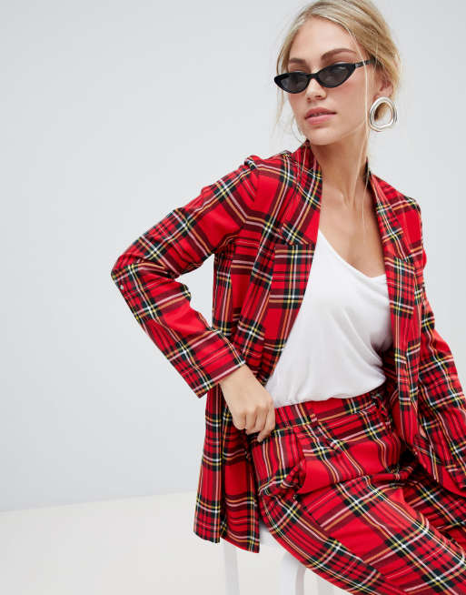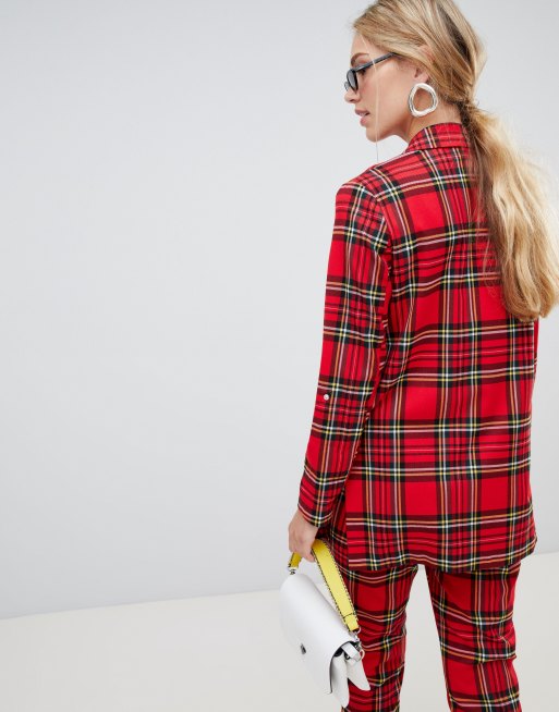 Stradivarius Blazer Lungo Rosso A Quadri Scozzesi Asos