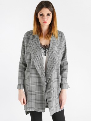 Blazer Lungo Beige Nero Quadri Donna H M Ch