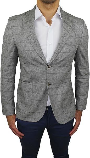 Giacca Blazer Uomo Nero Grigio Slim Fit Estiva Fantasia Quadri Casual Amazon It Abbigliamento