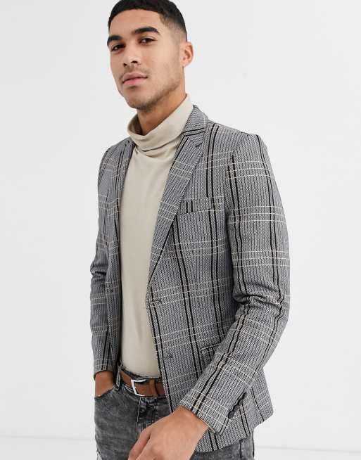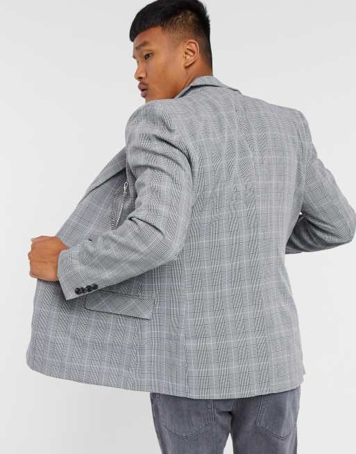 Blazer Skinny Grigio A Quadri Asos Design Uomo
