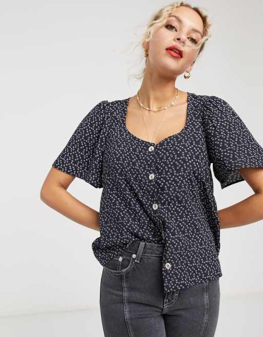 Other Stories Blusa A Fiori Con Bottoni Blu Navy Asos