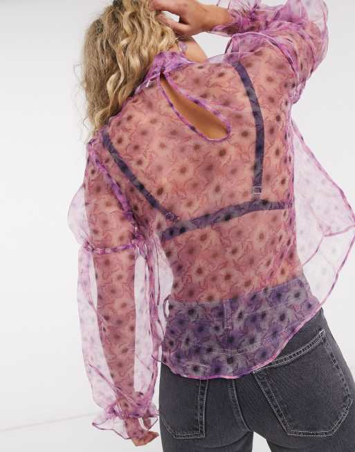 Topshop Blusa In Organza Con Stampa Rosa A Fiori Asos