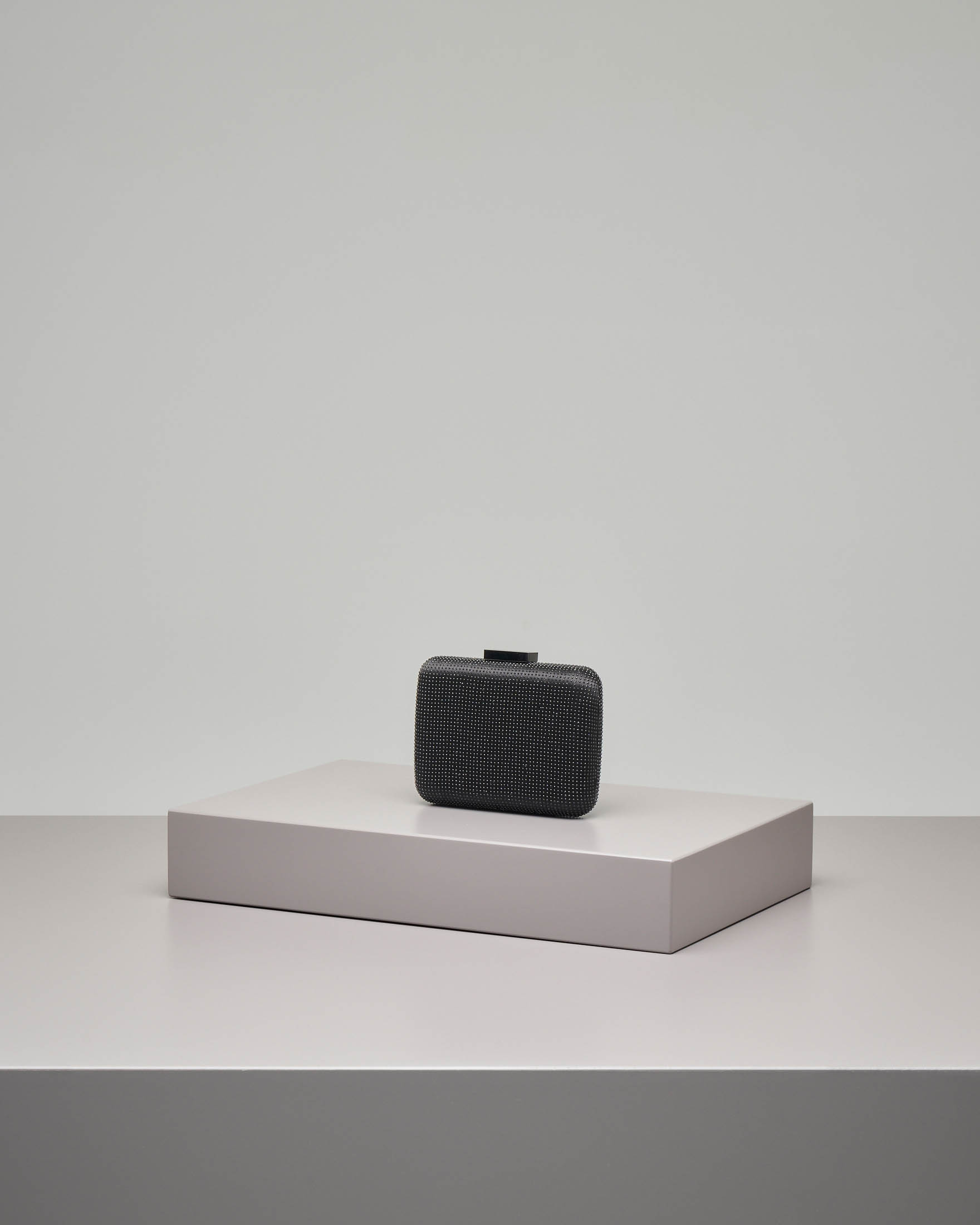 Pochette Rigida Quadrata Nera In Raso Con Microborchie Applicate Tono Su Tono Pellizzari E Commerce