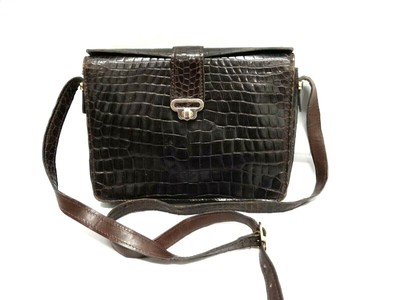 Borsa Pelle Stampa Cocco Marrone Vintage Anni 60 Rigida Manico Trapezio Torino Ebay