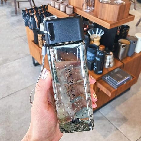 Ppting Bottiglia Di Acqua Di Plastica Nera Trasparente Bottiglia Quadrata Portatile Succo Di Frutta A Prova Di Perdite Sport All Aria Aperta Viaggi Campeggio Camping 300ml Amazon It Sport E Tempo Libero