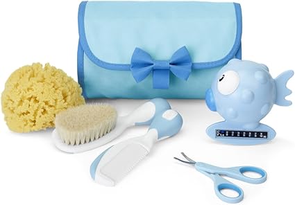 Chicco Set Igiene Per La Cura Dei Bambini Composto Da Un Pettine Una Spazzola Morbida Termometro Spugna Naturale E Un Paio Di Forbici Azzurro Amazon It Prima Infanzia