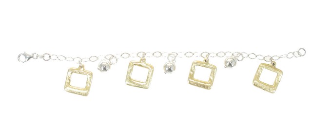 Bracciale Argento 925 Con Charms Palline Argento E Quadri Laminato Oro Mp 1004 Ebay