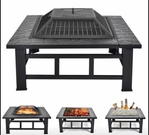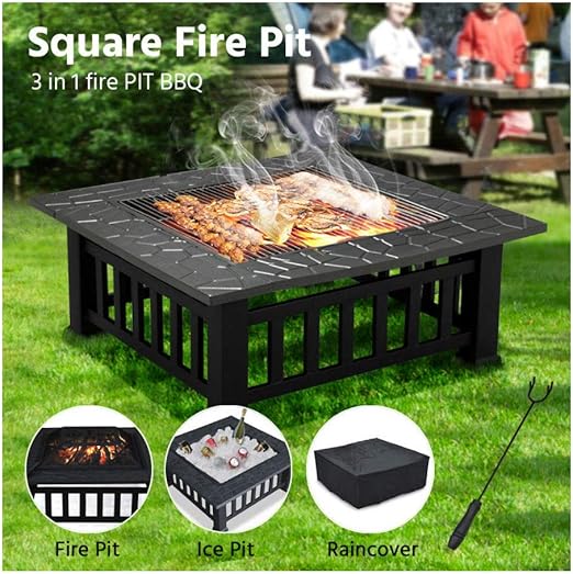 Outdoor Fire Pit Bbq Buca Per Il Fuoco Braciere Da Giardino Quadrato Tavolo Stufa Patio Riscaldatore 81cm Ebay