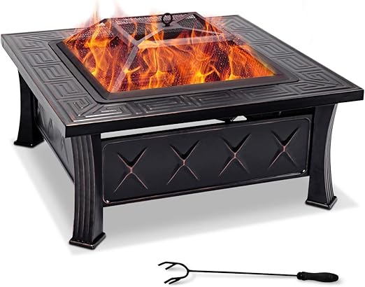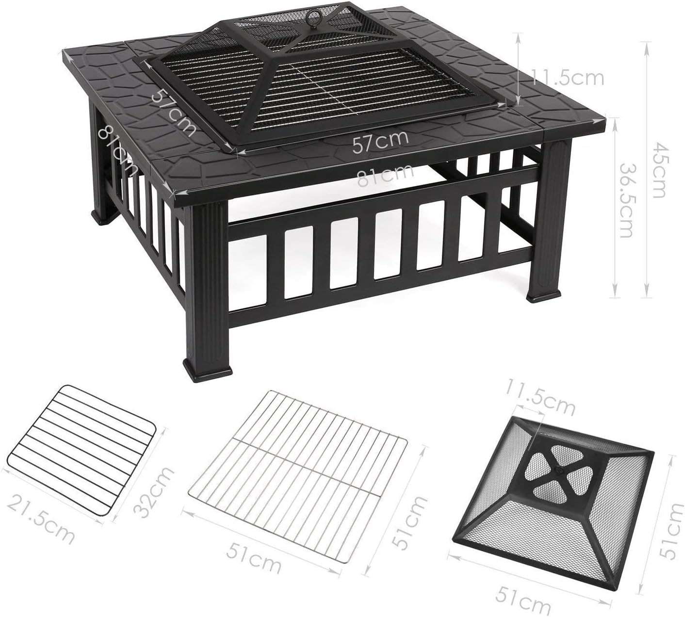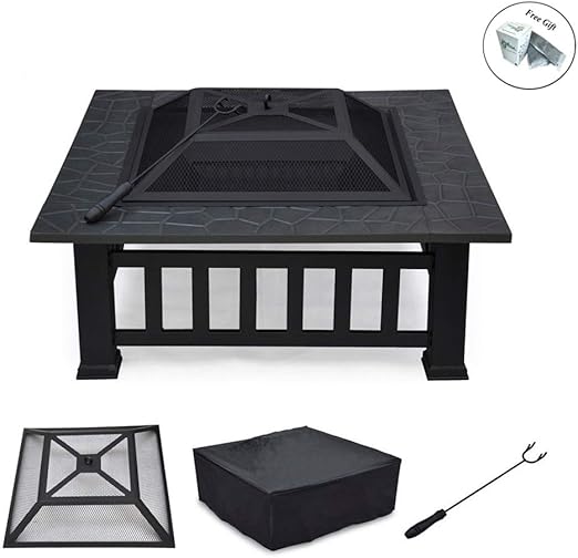 Con Attizzatoio E Coperchio Nero Gfp81bk Braciere Da Esterno 81 X 81 X 50 Cm Riscaldatore Da Giardino Metallo Tavolo Quadrato Songmics Braciere Con Griglia Barbecue Giardino E Giardinaggio Decorazioni Per Il Giardino