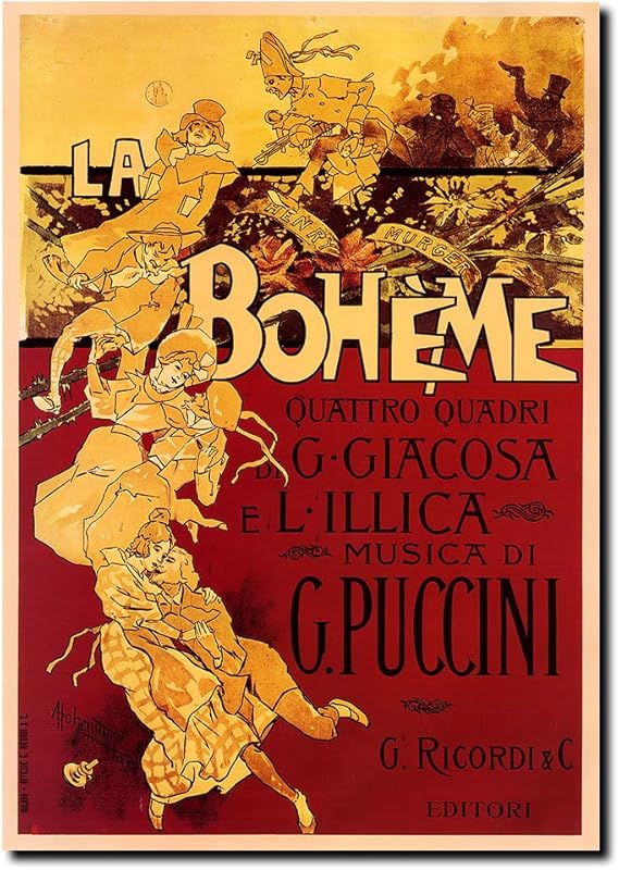 Boheme Puccini By Adolfo Hohenstein 35x47 Inch Canvas Wall Art Belindorinus