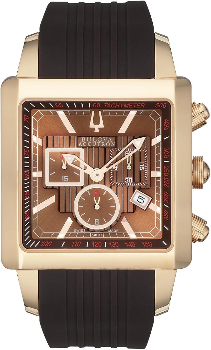 Bulova 64b115 Men S Watch 64b115 With Chronograph Square Rose Gold Brown Dial Brown Rubber Strap Amazon Co Uk Watches