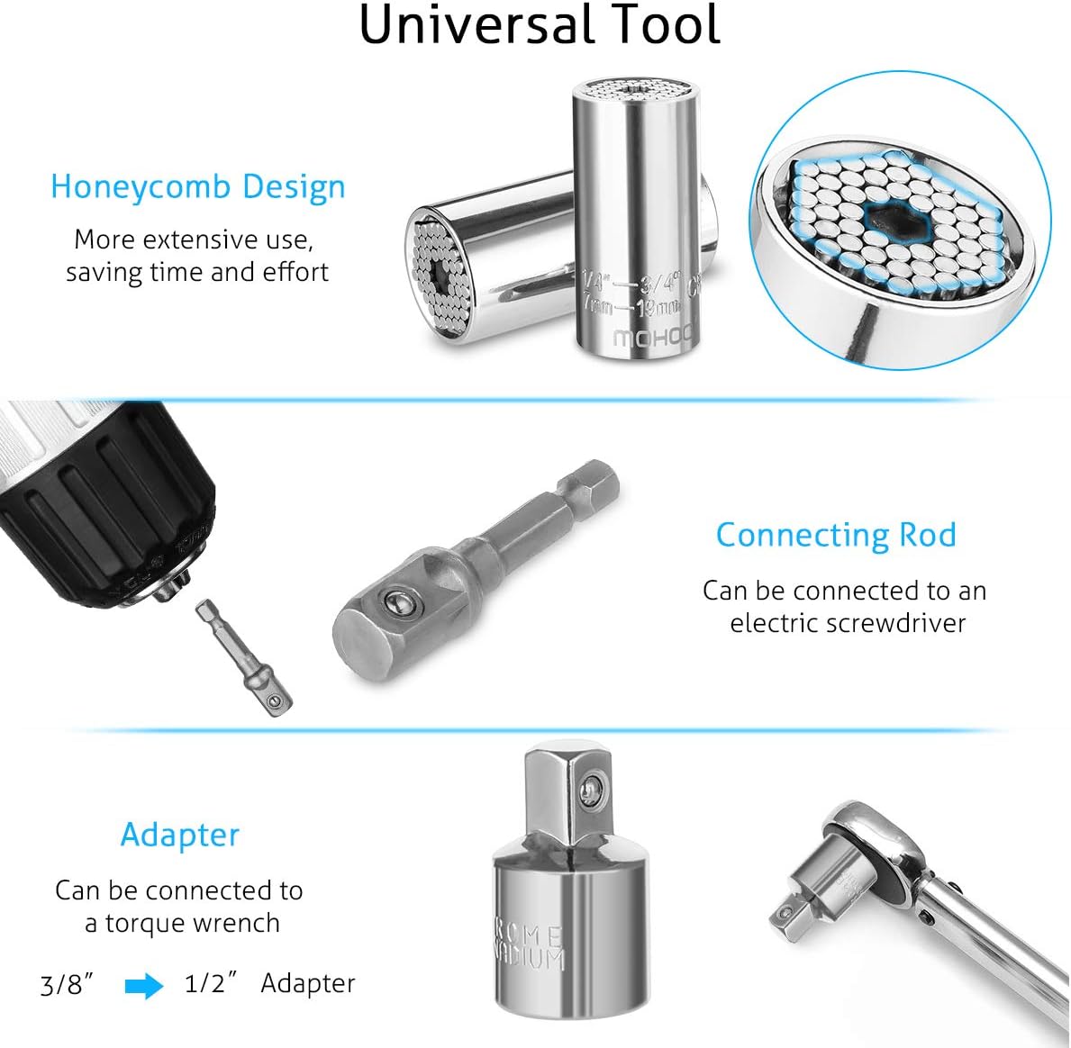 Tingb Adattatore Per Chiave A Bussola Esagonale Cr V Da 3 Pezzi A Prolunga Quadrata Per Cacciavite Elettrico Utensili Manuali Chiavi E Chiavi Inglesi