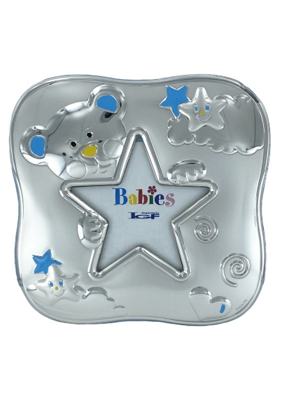 Cornice Bambino In Argento Foto 9 X 9 Cm A Forma Di Stella Azzurra