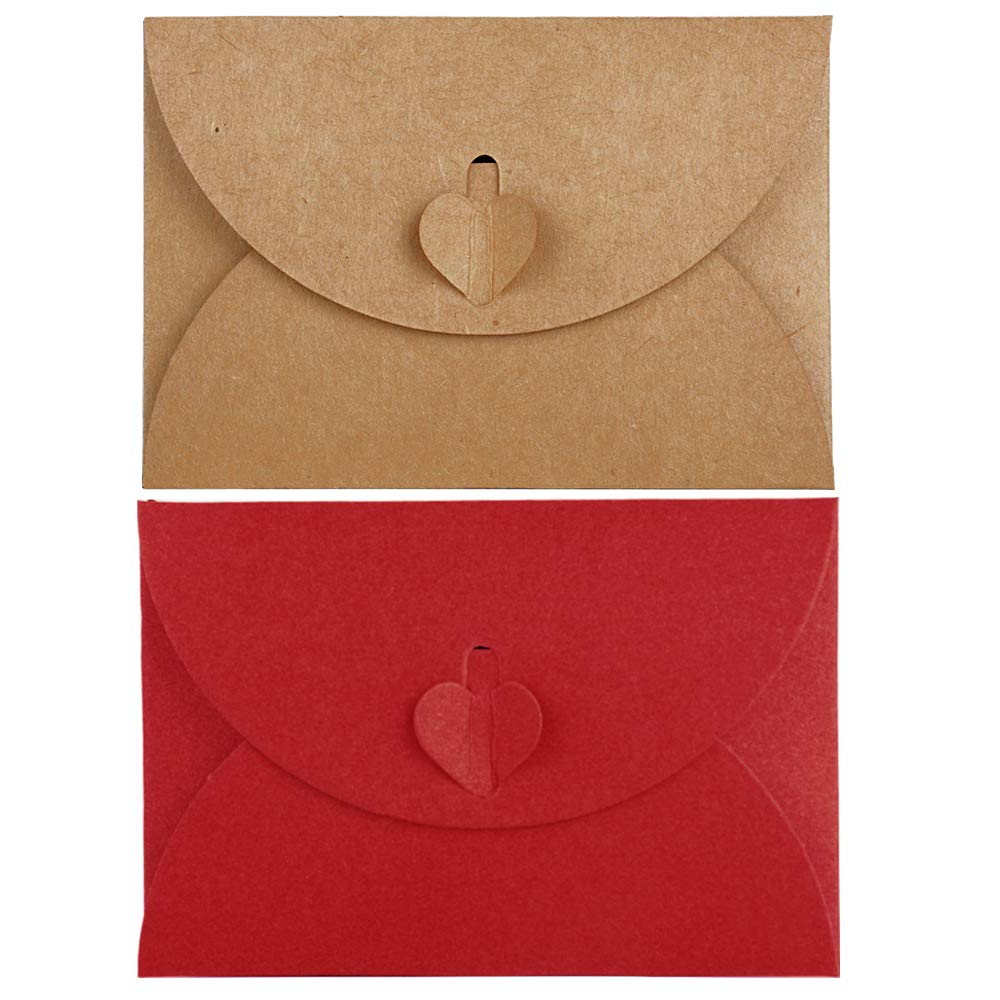 100pz Buste Di Carta Kraft Mini Piccole Vintage Con Chiusura A Cuore Per Biglietti Auguri Inviti