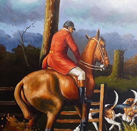 Art N 38m Dipinto Olio Su Tela Caccia Alla Volpe Amazon It Casa E Cucina