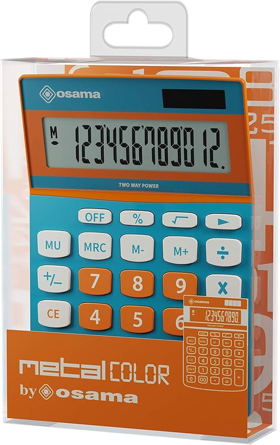 Osama Calcolatrice Metal 12 Cifre Becolor Azzurro Arancio Calcolatrici Elettronica Per Ufficio