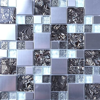 1 Mq Matte In Vetro E Acciaio Inox Spazzolato Mosaico Piastrelle Da Parete Fogli Argento E Nero Mt0164 Metro Quadrato Amazon It Fai Da Te