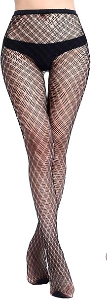 Calze Autoreggenti In Tulle Con Motivo A Quadri 1 Paio Romwe