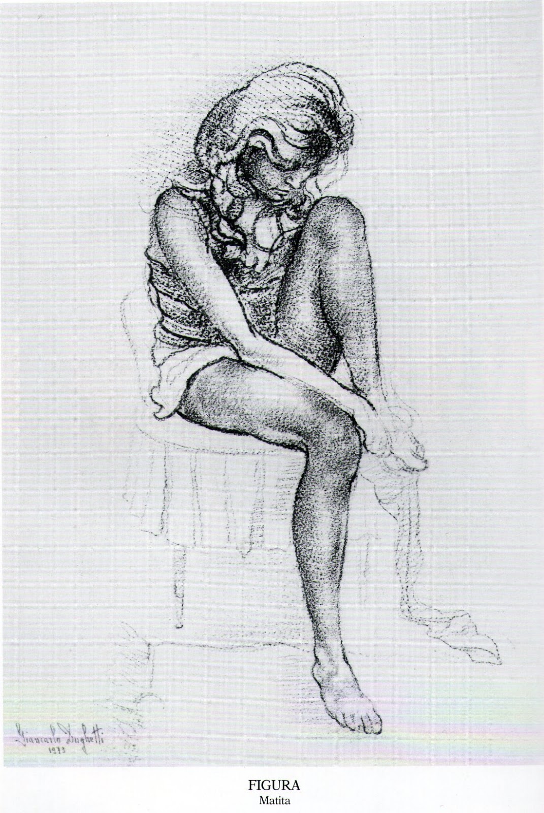 Giancarlo Dughetti Quadri E Miniature 1973 Donna Che Si Mette Le Calze Matita Cm 25 X 35 Collezione Privata Firenze