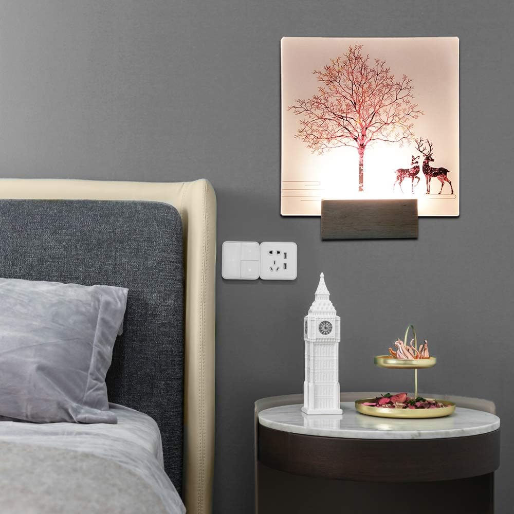 Artpad Lampada Da Parete Per Interni Creativa Moderna Per Camera Da Letto Quadrata 8w Romantica Tinta Unita Cervi Immagine Comodino Soggiorno Corridoio Luci Calde Con Base In Legno Massello Lampade Da Lettura