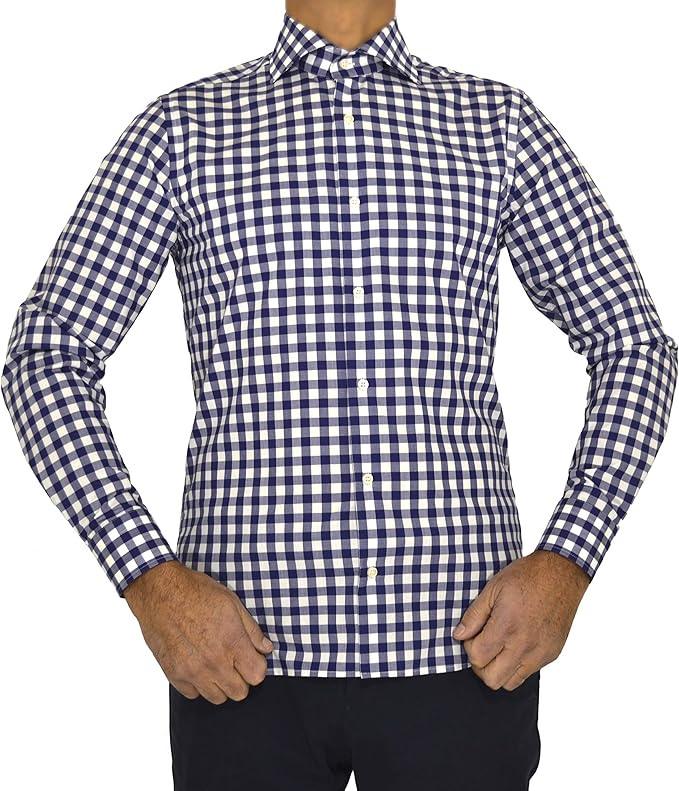 E Mecci In Promozione M19 Camicia Uomo Made In Italy 100 Cotone Quadro Blu Slim Fit Manica Lunga Amazon It Abbigliamento