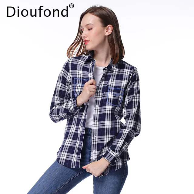 Dioufond Camicia Flanella Donna Manica Lunga Bluse E Camicie Donna Quadri Bluse E Camicie Abbigliamento