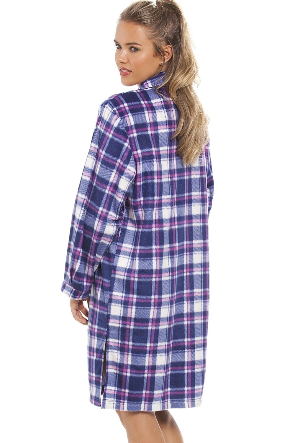 Camicia Da Notte A Quadri In Pile Con Bottoni Viola E Blu Navy Camille Donna Abbigliamento