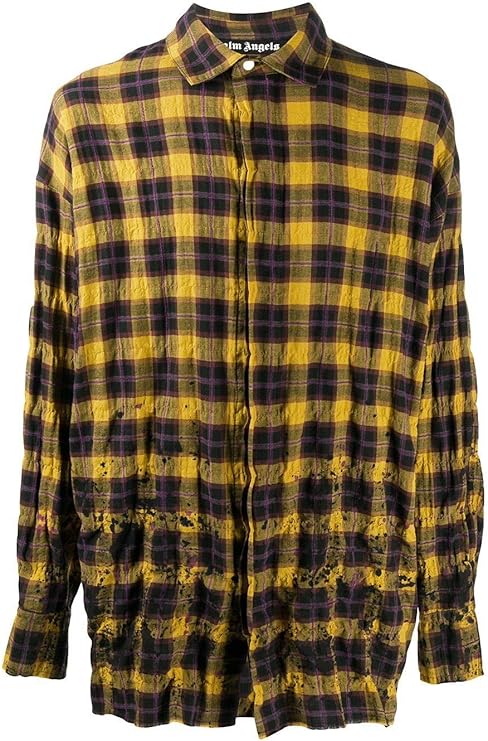 Camicia Palm Angels Con Stampa A Quadri E Scritte Camicia Palm Angels Uomo Giallo Camicia Palm Angels Pmga063r20754001 Giglio It