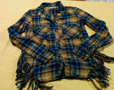Camicia Cotone Flanella Quadri Tartan Blu Turchese Senape Frange Pull And Bear S Ebay