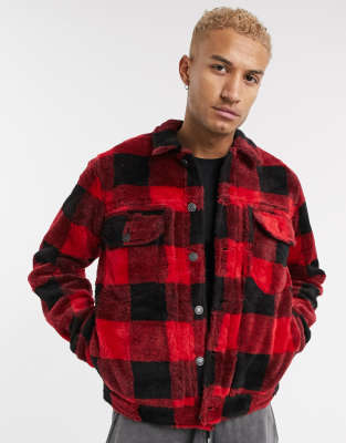 Pull Bear Camicia Rossa A Quadri In Pile Borg Asos
