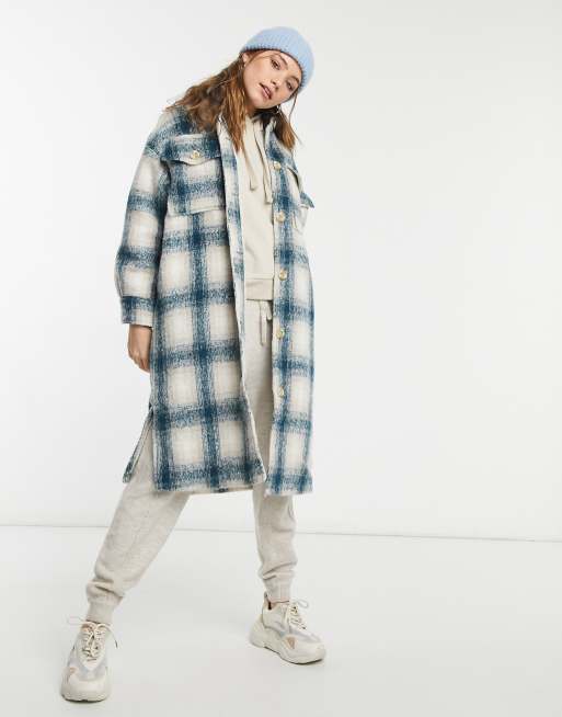 Pull Bear Camicia Giacca Lunga Blu E Cuoio A Quadri Iebem Morelos