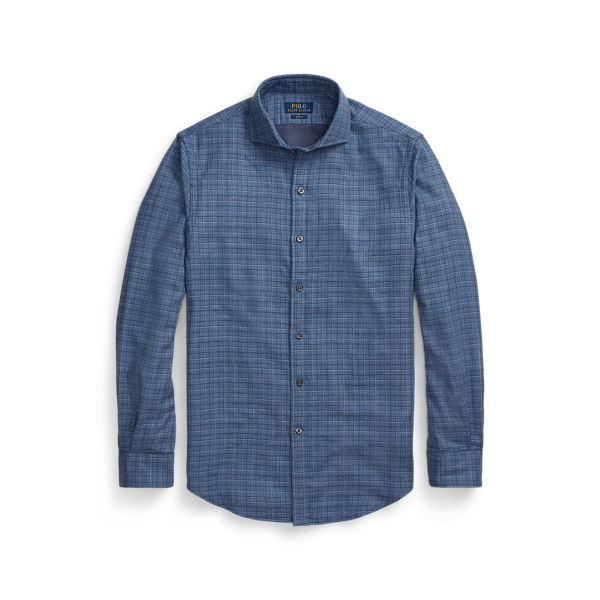 Ralph Lauren Camicia In Twill A Quadri Indaco Panna Camicie Casual Uomo Peterbald