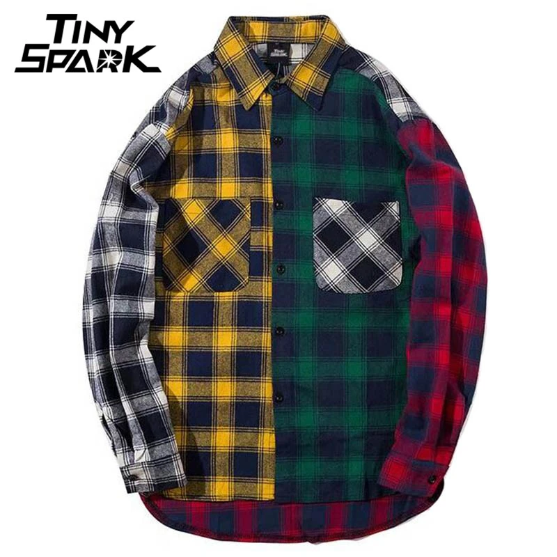 Lungo Hip Hop Camicie A Scacchi Mens Patchwork Camicia Streetwear Manica Lunga Vestito Giacca Camicia A Scacchi Rossa Camicetta Casual Ragazzi Freddi Plaid Shirt Men Red Checkeredmens Patchwork Shirt Aliexpress