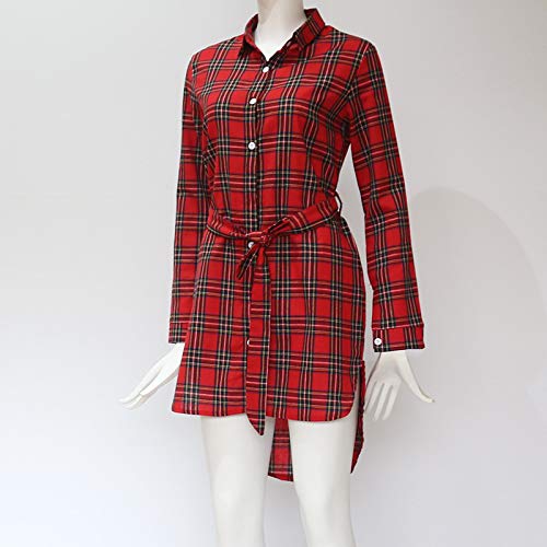 Laikete Camicia A Quadri Donna Swing Vestiti Pullover Asimmetrica Elegante Moda Manica Lunga Con Cintura Felpa