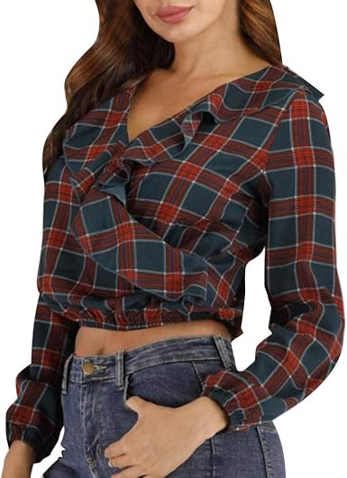 Zezkt Camicia A Quadri Donna Camicetta Maglia Manica Lunga Eleganti Felpe Tumblr Ragazza V Collo Maglietta Tops T Shirt Primavera Basic Shirt Amazon It Abbigliamento