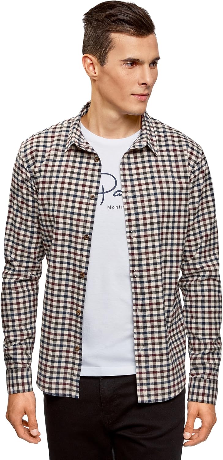 Camicie Casual Abbigliamento Oodji Ultra Uomo Camicia A Quadri Dal Taglio Regolare