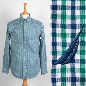 Da Uomo Nautica Camicia Verde E Blu A Quadri Colletto Abbottonato Motivo A Vela S Ebay