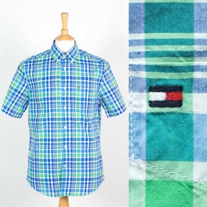 Uomo Tommy Hilfiger Manica Corta Camicia Verde E Blu Quadri Con Bottoni Collo S Ebay
